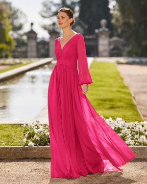 Vestido de fiesta largo y estilo fluido. Elaborado con georgette. Con escote profundo y manga larga.